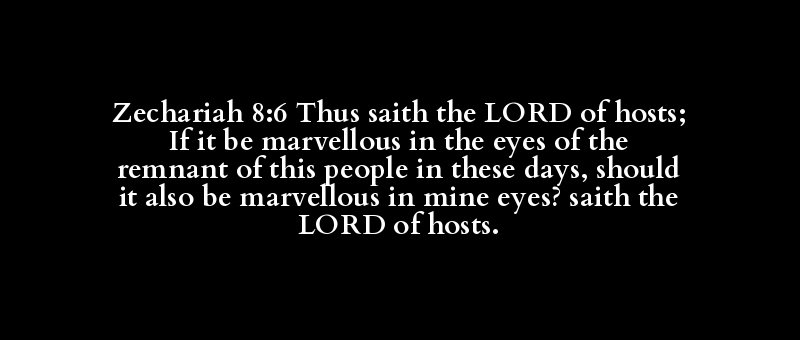 Zechariah 8:6 Thus saith the LORD of hosts; If it be marvellous in the eyes of the remnant of this people in these days, should it also be marvellous in mine eyes? saith the LORD of hosts.