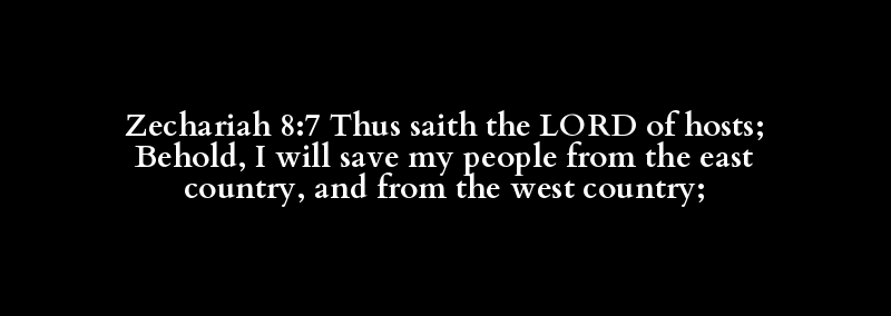 Zechariah 8:7 Thus saith the LORD of hosts; Behold, I will save my people from the east country, and from the west country;