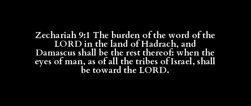 Zechariah 9:1 The burden of the word of the LORD in the land of Hadrach, and Damascus shall be the rest thereof: when the eyes of man, as of all the tribes of Israel, shall be toward the LORD.