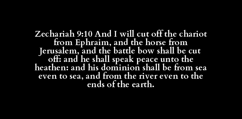 Zechariah 9:10 And I will cut off the chariot from Ephraim, and the horse from Jerusalem, and the battle bow shall be cut off: and he shall speak peace unto the heathen: and his dominion shall be from sea even to sea, and from the river even to the ends of the earth.