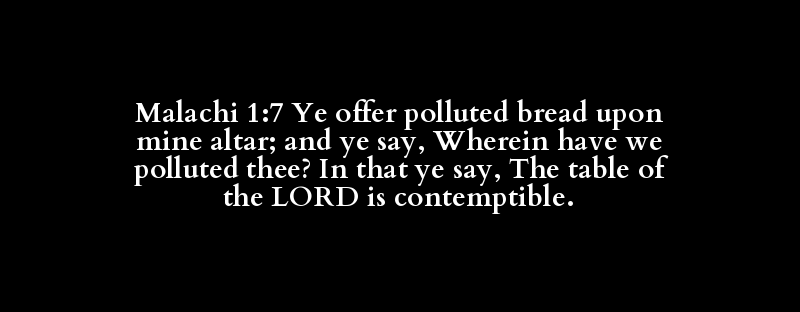 Malachi 1:7 Ye offer polluted bread upon mine altar; and ye say, Wherein have we polluted thee? In that ye say, The table of the LORD is contemptible.