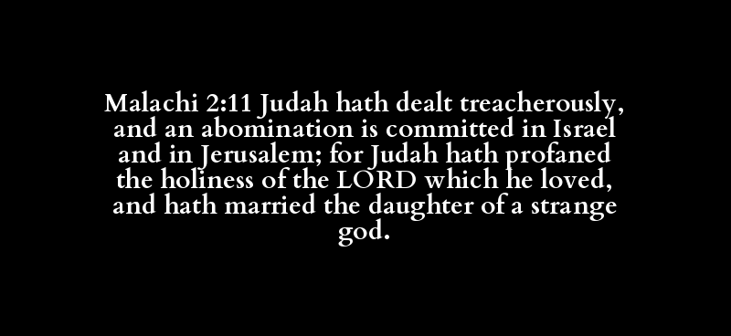 Malachi 2:11 Judah hath dealt treacherously, and an abomination is committed in Israel and in Jerusalem; for Judah hath profaned the holiness of the LORD which he loved, and hath married the daughter of a strange god.