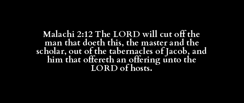 Malachi 2:12 The LORD will cut off the man that doeth this, the master and the scholar, out of the tabernacles of Jacob, and him that offereth an offering unto the LORD of hosts.