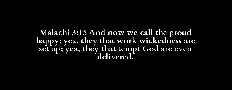 Malachi 3:15 And now we call the proud happy; yea, they that work wickedness are set up; yea, they that tempt God are even delivered.