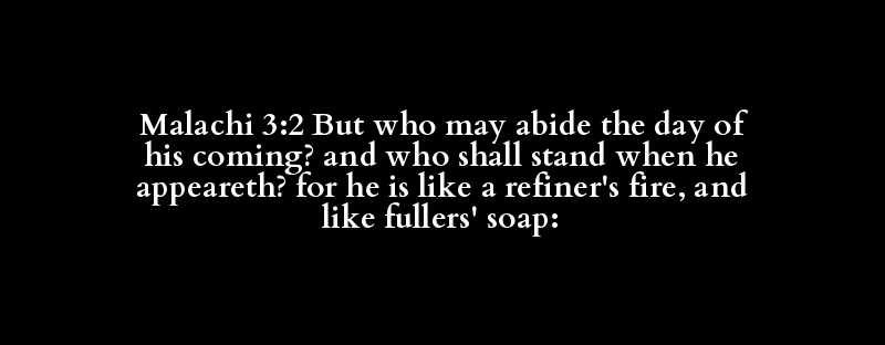 Malachi 3:2 But who may abide the day of his coming? and who shall stand when he appeareth? for he is like a refiner's fire, and like fullers' soap: