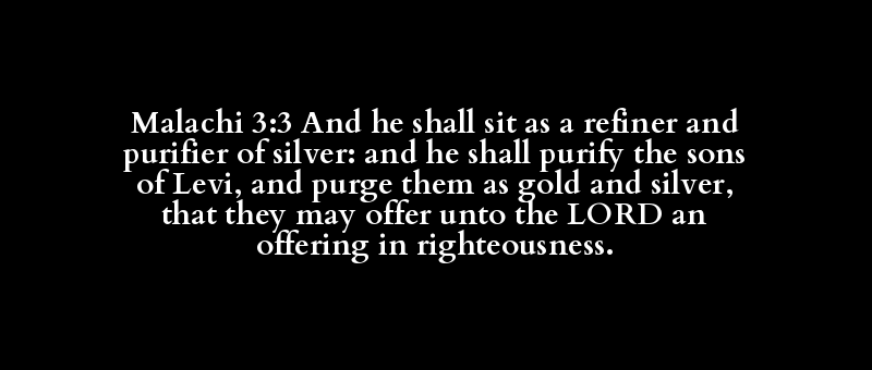 Malachi 3:3 And he shall sit as a refiner and purifier of silver: and he shall purify the sons of Levi, and purge them as gold and silver, that they may offer unto the LORD an offering in righteousness.