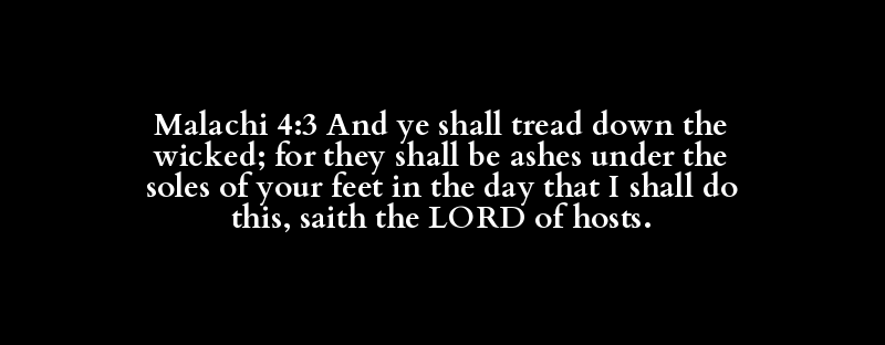 Malachi 4:3 And ye shall tread down the wicked; for they shall be ashes under the soles of your feet in the day that I shall do this, saith the LORD of hosts.