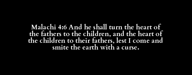 Malachi 4:6 And he shall turn the heart of the fathers to the children, and the heart of the children to their fathers, lest I come and smite the earth with a curse.