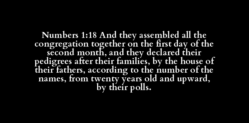 Numbers 1:18 And they assembled all the congregation together on the first day of the second month, and they declared their pedigrees after their families, by the house of their fathers, according to the number of the names, from twenty years old and upward, by their polls.