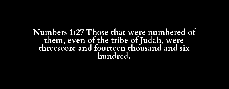 Numbers 1:27 Those that were numbered of them, even of the tribe of Judah, were threescore and fourteen thousand and six hundred.