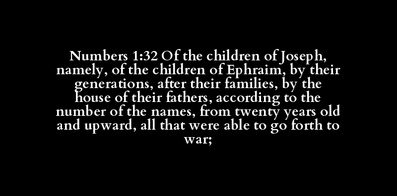 Numbers 1:32 Of the children of Joseph, namely, of the children of Ephraim, by their generations, after their families, by the house of their fathers, according to the number of the names, from twenty years old and upward, all that were able to go forth to war;