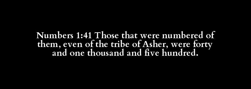 Numbers 1:41 Those that were numbered of them, even of the tribe of Asher, were forty and one thousand and five hundred.