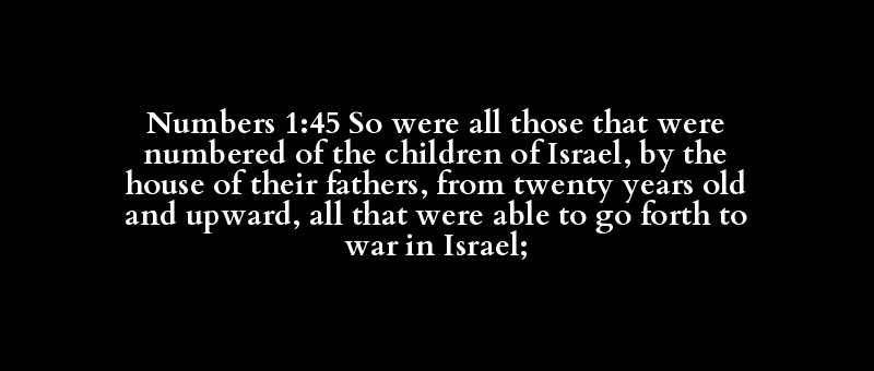 Numbers 1:45 So were all those that were numbered of the children of Israel, by the house of their fathers, from twenty years old and upward, all that were able to go forth to war in Israel;