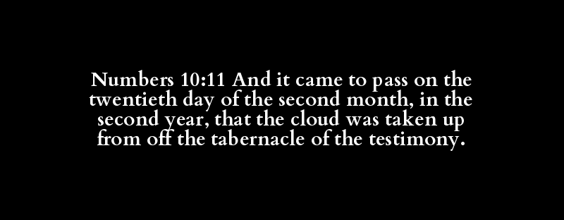 Numbers 10:11 And it came to pass on the twentieth day of the second month, in the second year, that the cloud was taken up from off the tabernacle of the testimony.
