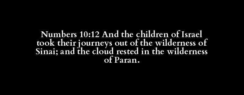 Numbers 10:12 And the children of Israel took their journeys out of the wilderness of Sinai; and the cloud rested in the wilderness of Paran.