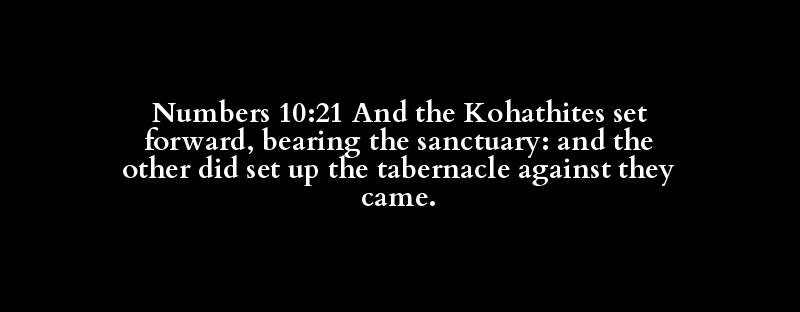 Numbers 10:21 And the Kohathites set forward, bearing the sanctuary: and the other did set up the tabernacle against they came.