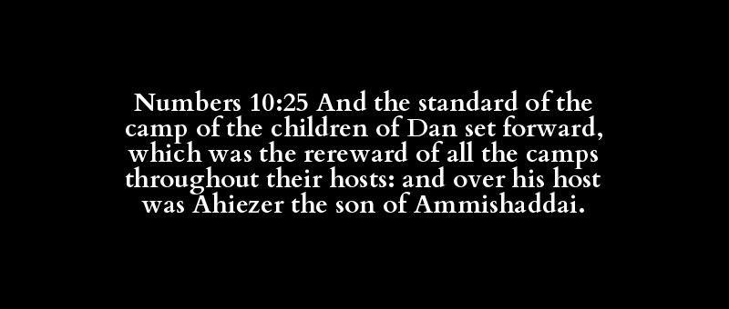 Numbers 10:25 And the standard of the camp of the children of Dan set forward, which was the rereward of all the camps throughout their hosts: and over his host was Ahiezer the son of Ammishaddai.