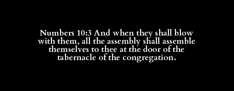 Numbers 10:3 And when they shall blow with them, all the assembly shall assemble themselves to thee at the door of the tabernacle of the congregation.