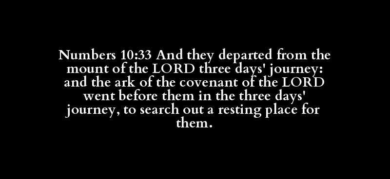 Numbers 10:33 And they departed from the mount of the LORD three days' journey: and the ark of the covenant of the LORD went before them in the three days' journey, to search out a resting place for them.