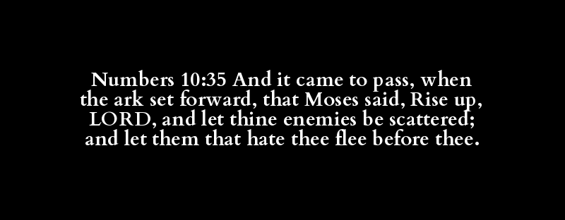 Numbers 10:35 And it came to pass, when the ark set forward, that Moses said, Rise up, LORD, and let thine enemies be scattered; and let them that hate thee flee before thee.