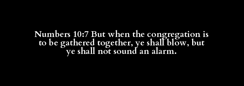 Numbers 10:7 But when the congregation is to be gathered together, ye shall blow, but ye shall not sound an alarm.