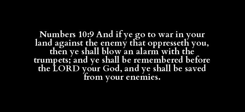 Numbers 10:9 And if ye go to war in your land against the enemy that oppresseth you, then ye shall blow an alarm with the trumpets; and ye shall be remembered before the LORD your God, and ye shall be saved from your enemies.