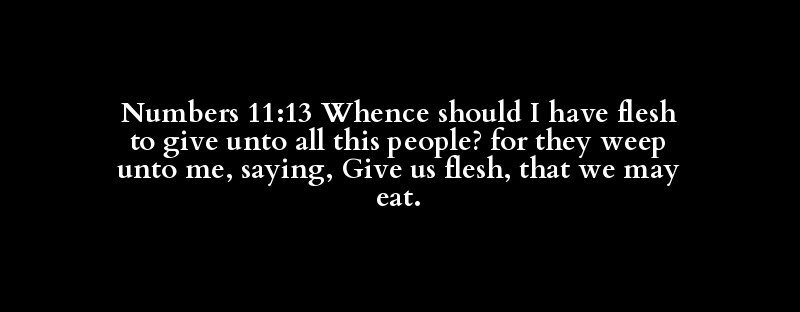 Numbers 11:13 Whence should I have flesh to give unto all this people? for they weep unto me, saying, Give us flesh, that we may eat.