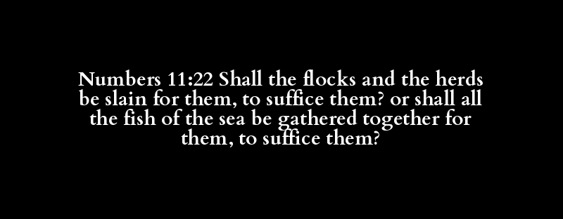 Numbers 11:22 Shall the flocks and the herds be slain for them, to suffice them? or shall all the fish of the sea be gathered together for them, to suffice them?