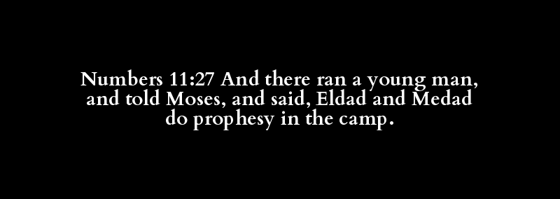 Numbers 11:27 And there ran a young man, and told Moses, and said, Eldad and Medad do prophesy in the camp.