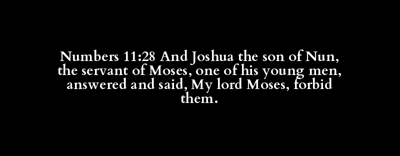 Numbers 11:28 And Joshua the son of Nun, the servant of Moses, one of his young men, answered and said, My lord Moses, forbid them.