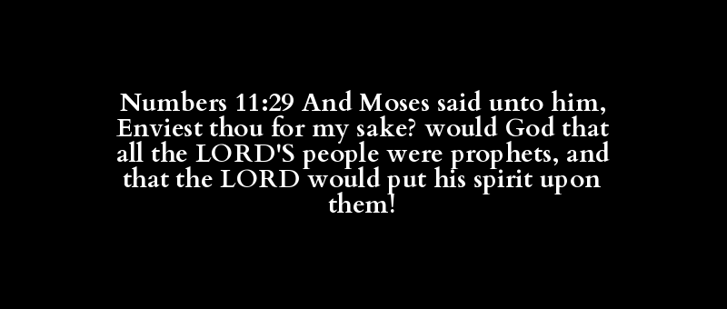 Numbers 11:29 And Moses said unto him, Enviest thou for my sake? would God that all the LORD'S people were prophets, and that the LORD would put his spirit upon them!
