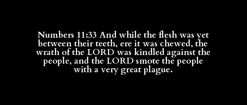 Numbers 11:33 And while the flesh was yet between their teeth, ere it was chewed, the wrath of the LORD was kindled against the people, and the LORD smote the people with a very great plague.