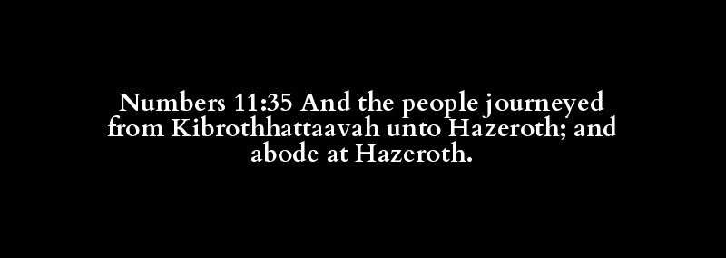 Numbers 11:35 And the people journeyed from Kibrothhattaavah unto Hazeroth; and abode at Hazeroth.