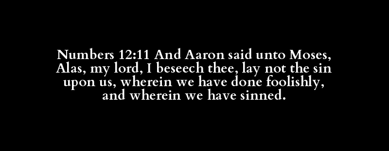 Numbers 12:11 And Aaron said unto Moses, Alas, my lord, I beseech thee, lay not the sin upon us, wherein we have done foolishly, and wherein we have sinned.