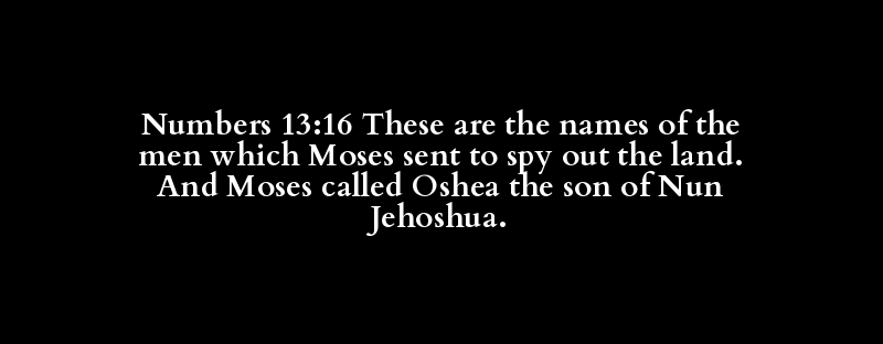 Numbers 13:16 These are the names of the men which Moses sent to spy out the land. And Moses called Oshea the son of Nun Jehoshua.