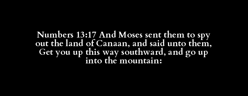 Numbers 13:17 And Moses sent them to spy out the land of Canaan, and said unto them, Get you up this way southward, and go up into the mountain: