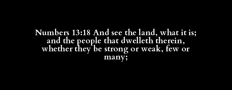 Numbers 13:18 And see the land, what it is; and the people that dwelleth therein, whether they be strong or weak, few or many;