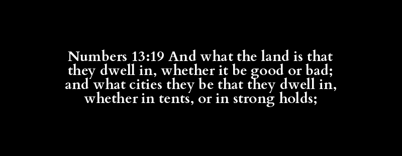 Numbers 13:19 And what the land is that they dwell in, whether it be good or bad; and what cities they be that they dwell in, whether in tents, or in strong holds;