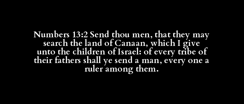 Numbers 13:2 Send thou men, that they may search the land of Canaan, which I give unto the children of Israel: of every tribe of their fathers shall ye send a man, every one a ruler among them.