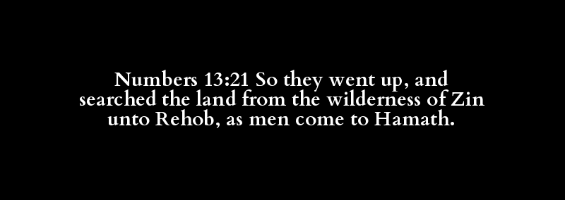 Numbers 13:21 So they went up, and searched the land from the wilderness of Zin unto Rehob, as men come to Hamath.