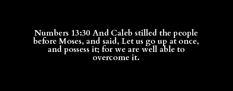 Numbers 13:30 And Caleb stilled the people before Moses, and said, Let us go up at once, and possess it; for we are well able to overcome it.