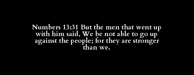 Numbers 13:31 But the men that went up with him said, We be not able to go up against the people; for they are stronger than we.