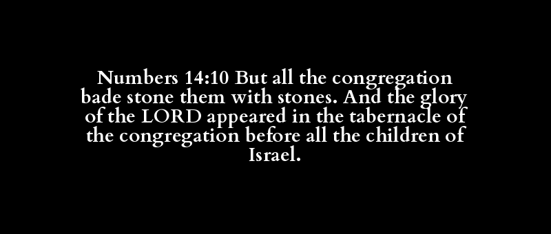 Numbers 14:10 But all the congregation bade stone them with stones. And the glory of the LORD appeared in the tabernacle of the congregation before all the children of Israel.