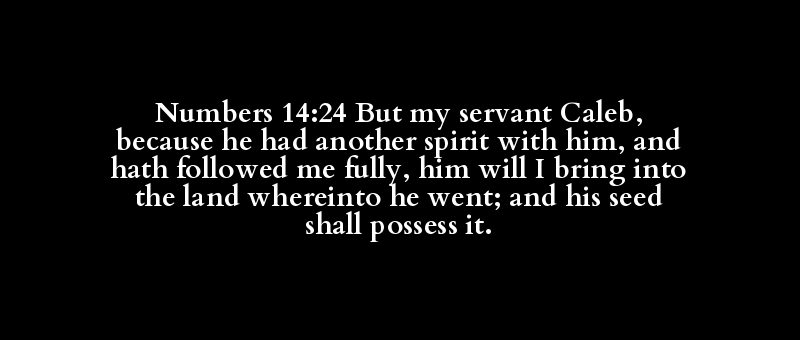 Numbers 14:24 But my servant Caleb, because he had another spirit with him, and hath followed me fully, him will I bring into the land whereinto he went; and his seed shall possess it.