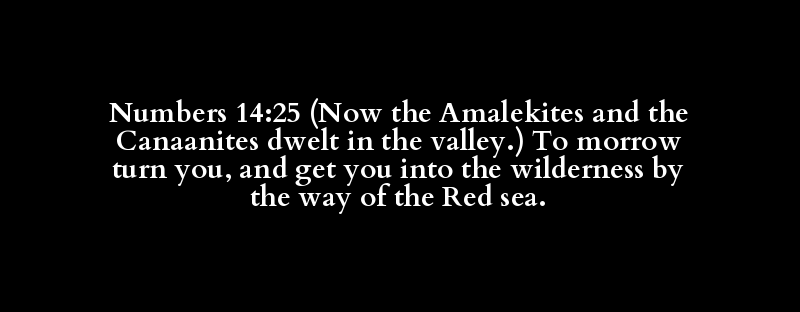 Numbers 14:25 (Now the Amalekites and the Canaanites dwelt in the valley.) To morrow turn you, and get you into the wilderness by the way of the Red sea.