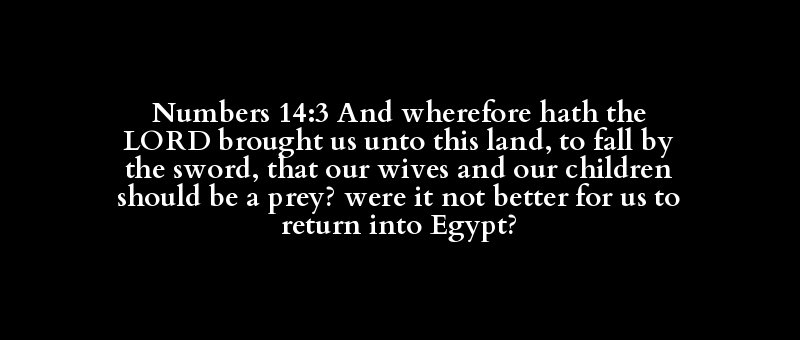 Numbers 14:3 And wherefore hath the LORD brought us unto this land, to fall by the sword, that our wives and our children should be a prey? were it not better for us to return into Egypt?