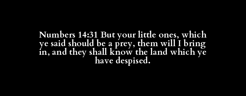 Numbers 14:31 But your little ones, which ye said should be a prey, them will I bring in, and they shall know the land which ye have despised.