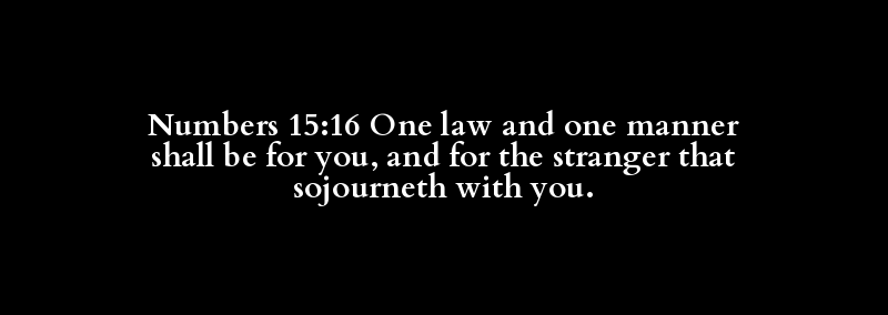 Numbers 15:16 One law and one manner shall be for you, and for the stranger that sojourneth with you.
