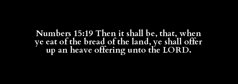 Numbers 15:19 Then it shall be, that, when ye eat of the bread of the land, ye shall offer up an heave offering unto the LORD.