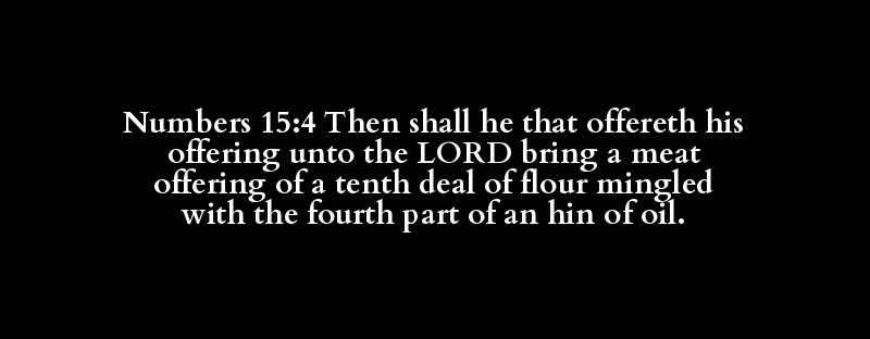 Numbers 15:4 Then shall he that offereth his offering unto the LORD bring a meat offering of a tenth deal of flour mingled with the fourth part of an hin of oil.